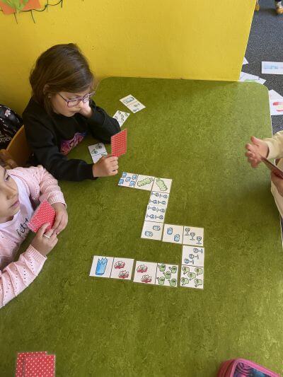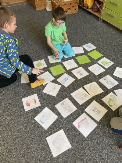 Děti se s velkým nadšením pustily do jeho třídění formou her. Pomocí baterky objevovaly skryté obrázky odpadků a ve dvojicích je pak správně třídily do barevných kontejnerů. Velkou radost jim udělaly i jejich zmenšené modely, se kterými mohly samy pracovat. Velký úspěch měly také didaktické hry – pexeso a domino s tématem odpadu.