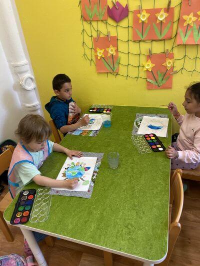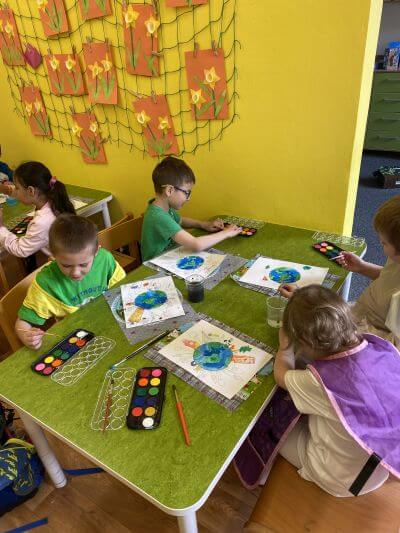 Výtvarně jsme Den Země zakončili kresbou naší planety a všeho, co na ní žije.