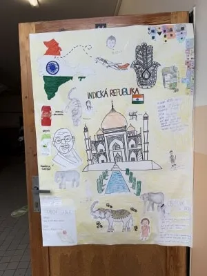 Navíc vytvořili slovníček běžně používaných frází nebo slov v evropském jazyce, který se v dané zemi používá, a vše vizuálně ztvárnili pomocí kreseb, fotografií a symbolů. Tyto originální a nápadité plakáty pak zdobily dveře jejich tříd a oživily tak chodby školy.