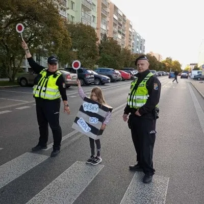 V úterý 17. září si navíc žáci pod vedením městské policie Neratovice vyzkoušeli, jaké to je stát na druhé straně přechodu. Společně s policisty tvořili hlídku před obchodem TESCO a pomáhali dohlížet na bezpečné přecházení spolužáků, rodičů i ostatních chodců.