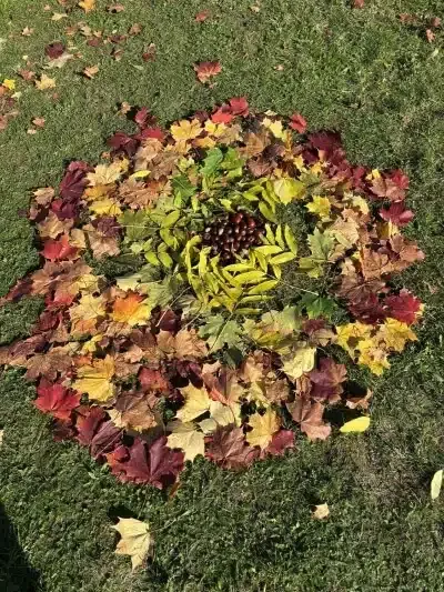 V rámci podzimní výtvarné výchovy jsme vyrazili ven na hřiště, kde jsme tvořili z barevného listí a přírodnin krásné podzimní obrazy.